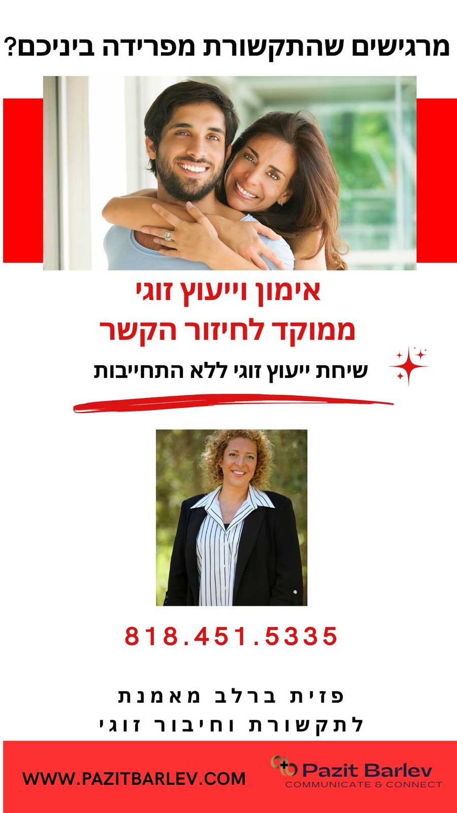 נעים מאוד, אני פזית בר-לב, מאמנת ויועצת זוגית המתמחה ביצירת חיבור מחודש ותקשורת מקרבת –